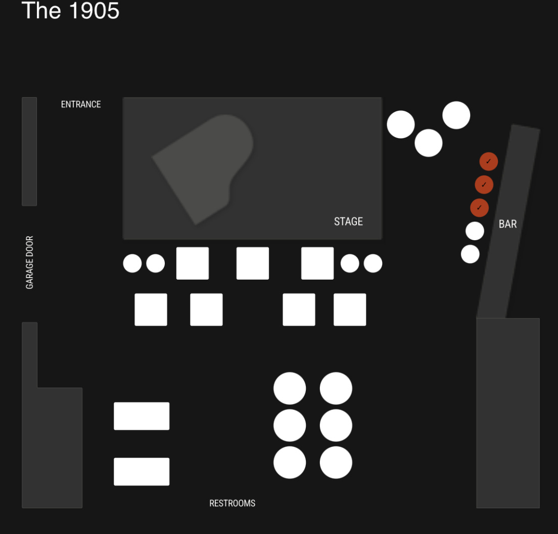 A shout out to my buddy Adam for spontaneously buying me a ticket to see my favorite local trumpeter, Cyrus Nabipoor, in a couple weeks at my favorite jazz local jazz bar, The 1905. Unlike The Get Down, the 1905 is most definitely intimate. Here’s the club’s seating chart: