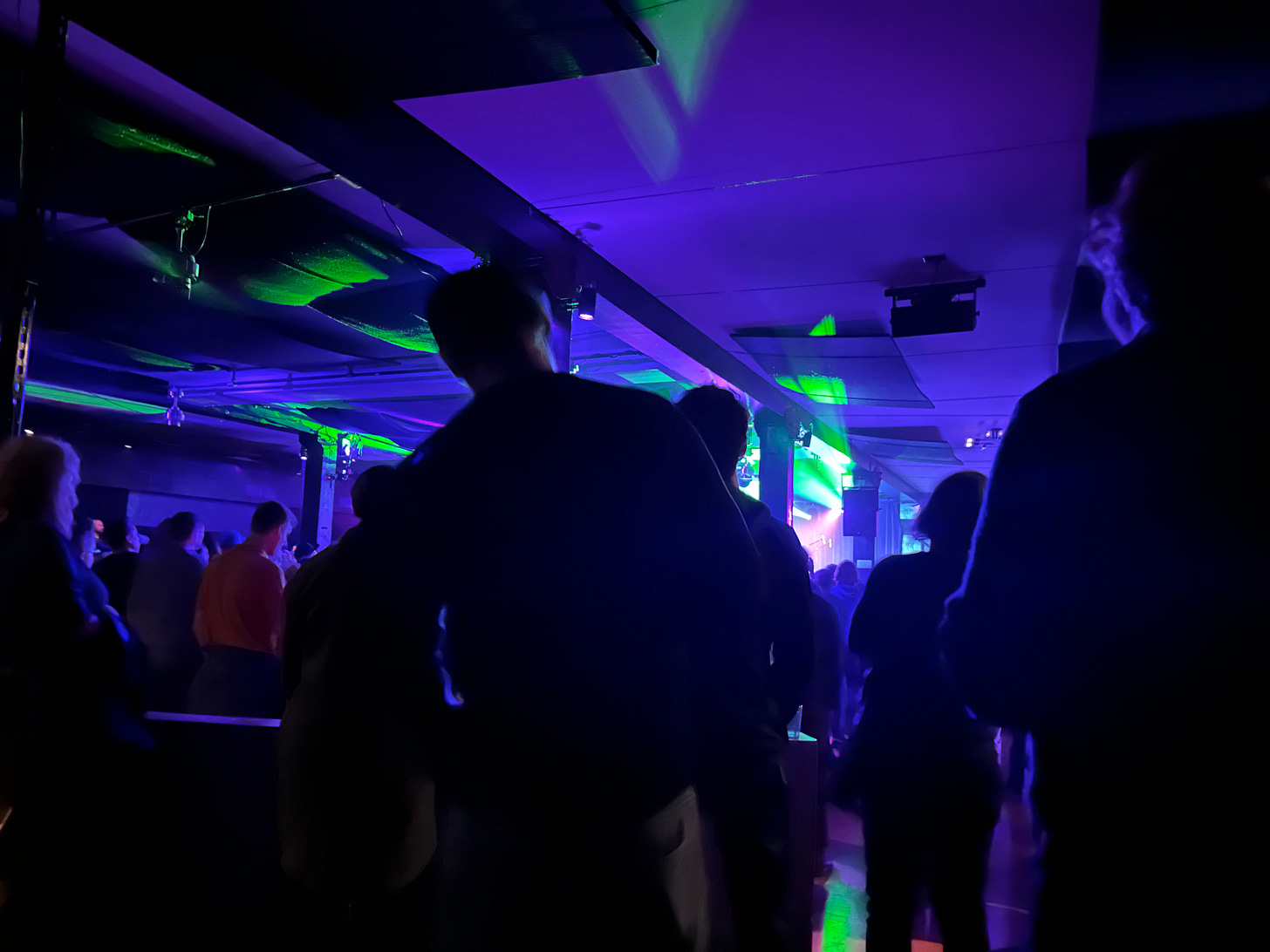 By evening, after lots of rest and loosening (thanks to the support of my amazing wife, Alice), I was affixing a lidocaine patch to my back, and making my way to the show. the Get Down is a basement GA venue consisting of ..a small area with a dance floor and a raised outer semi-circle containing the Front-of-House (FOH) engineer’s booth, general admission (GA) space, and ADA seating.